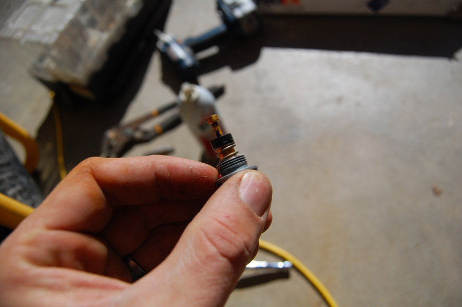 Inside, I saw a spring thing, a metal pin, and a rubber seal. But the spring wasn’t very springy. “Hmm, that’s a clue”, I thought.