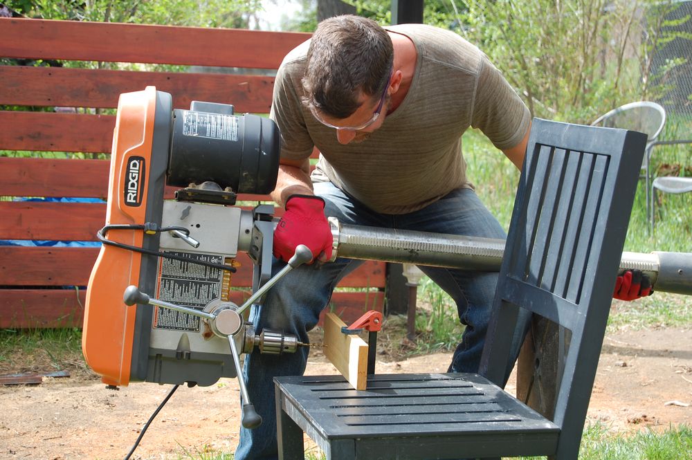 Then when things get really tough, I use the drill press. I have a Ridgid 15″ machine, which is the largest one I could find. With this thing, I can drill 50 half-inch holes through half-inch steel plate without breaking a sweat. On the downside, it weighs 163 pounds.