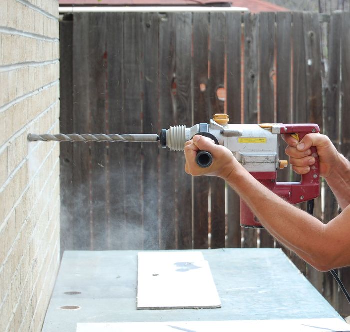 Of course, sometimes you need more power. To drill through a concrete foundation, I use this hammer drill. It does stuff the little cordless could only dream of, but in exchange it is so big you have to angle it properly to even carry it through a doorframe.