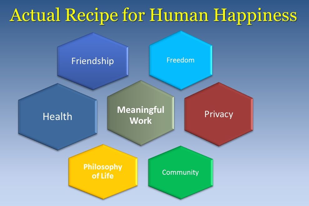 I like to think that “Variety” is another necessary component to happiness. Instead of focusing on the best possible experience related to one specific activity (owning the nicest car, the fastest computer, etc.) you focus on having a variety of activities/objects to the point that you’re not focused solely on one particular thing too long. So for transportation, there’s no point in having the nicest car OR the nicest bike because you are going to ideally switch between the two. For living, there’s no point in a mansion and no point in 5 star hotels because you’re going to switch between the two and the switching brings more happiness than focusing on the “best” of anything.
