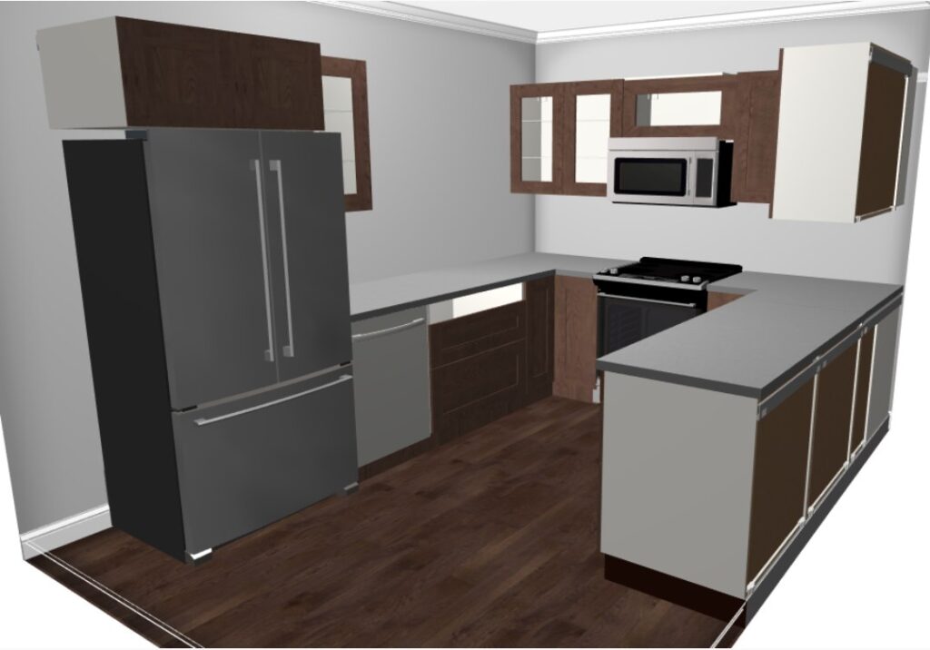 We also had 18 ft of base cabinets & we designed the 4×8 island with cabinets both sides & added a small walk-in pantry.