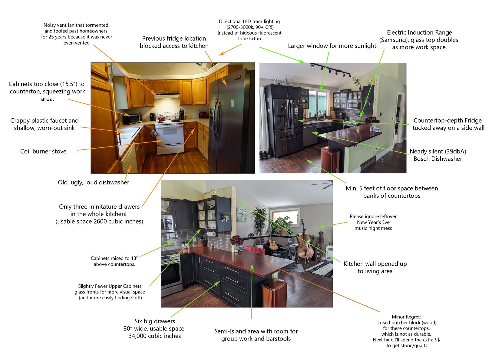 Whoo! Okay there’s a lot of info in there, but it’s worth reading through because it captures many of the things I like to cover in a new kitchen. The biggest principle to follow is just to give everything enough space – especially the chefs themselves. This sometimes requires clever space-saving tricks, but it’s also why I end up moving or removing walls so often. Small spaces in your own house suck!