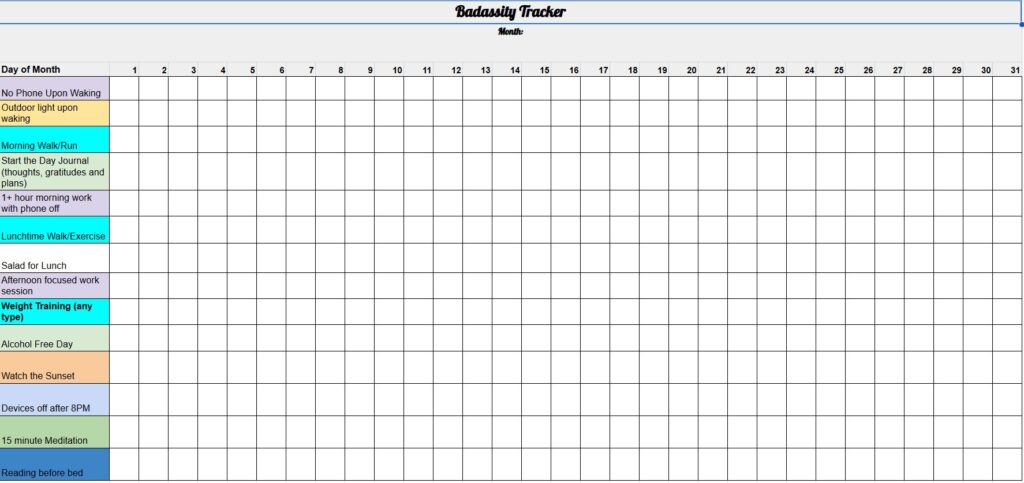 Many thanks for the Badassity Habit Tracker! It’s a good reminder that your time and attention is the currency you pay these data companies (Amazon, TikTok, etc), zoom out and think about how one actually *wants* to spend their time. Grazi!