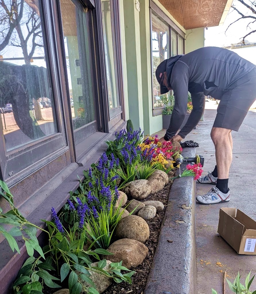 Hahaha okay I welcome the challenges. Totally agree that real plants are way better than fake ones. And the HQ interior is packed with real ones, which we put a LOT of effort into watering and keeping alive. But we can’t keep real plants alive outside in that location: we tried and they die instantly in the hot dry climate and there aren’t enough volunteers to water stuff out there on the street. So I am very happy with the fake garden – it gives me joy every time I see it, and brightens up our whole Main Street for anyone walking by (especially since they don’t even know they are fake).