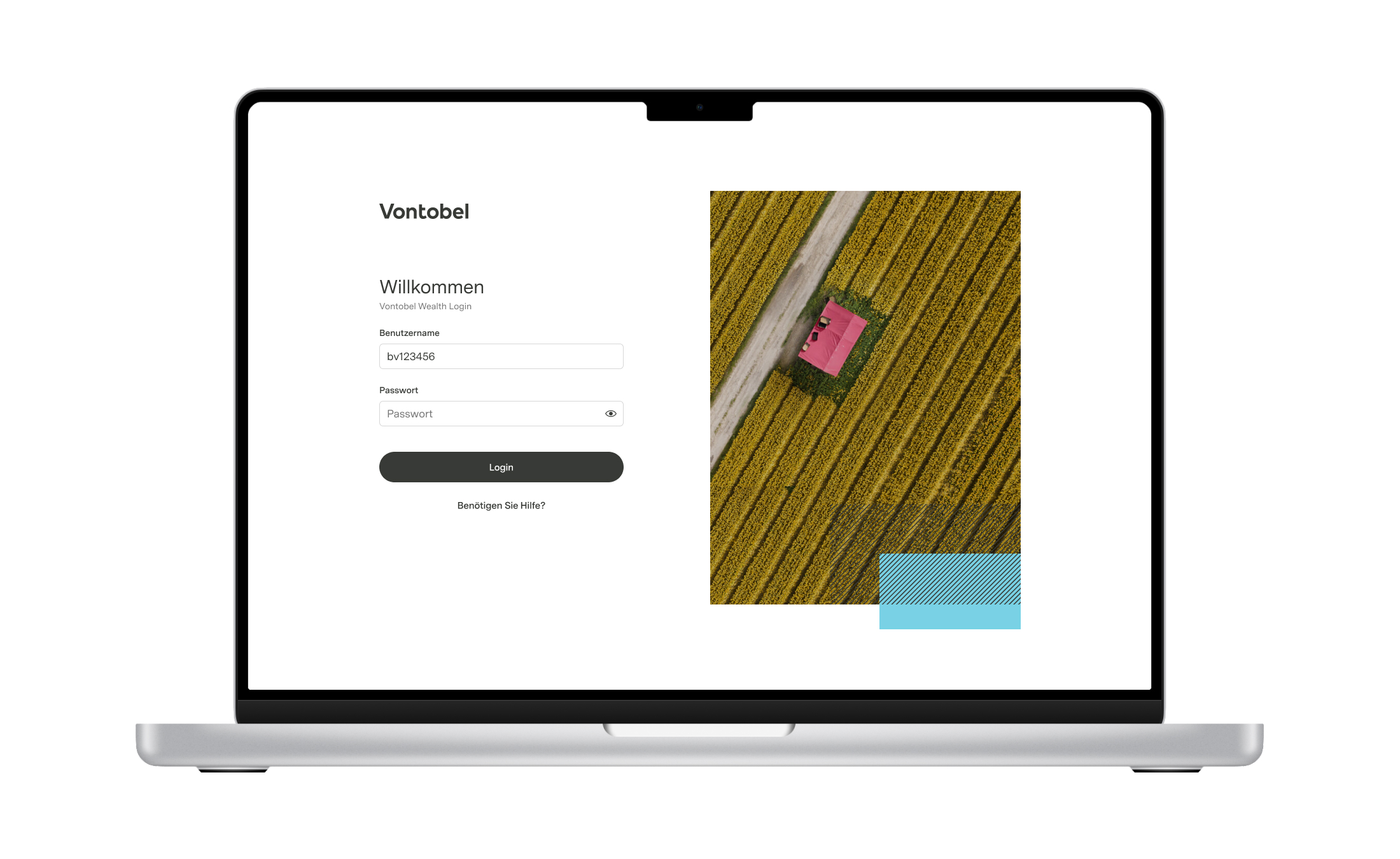 Rufen Sie digitalservices.vontobel.com auf Ihrem Computer auf. Geben Sie Benutzernamen und Initialpasswort ein und wählen Sie «Login».