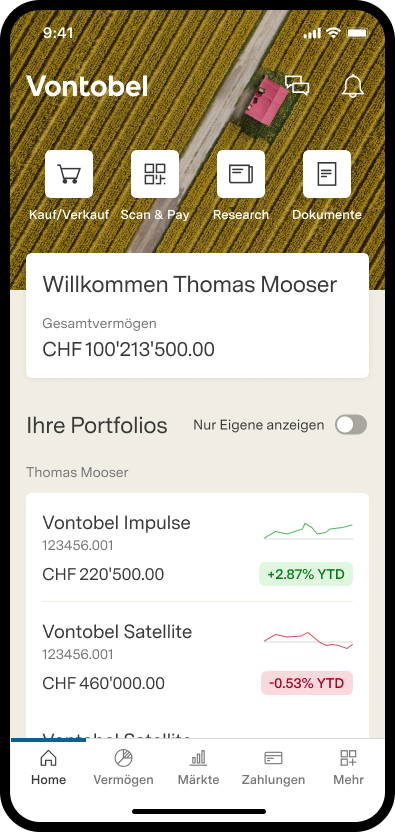 Die mobile App von Vontobel Wealth ist Ihre sichere E-Banking-Lösung für eine effiziente Vermögensverwaltung. Sie bietet Ihnen jederzeit und überall elektronischen Zugriff auf Ihre Bankunterlagen und wichtige Dienstleistungen. Dank ihres intuitiven Designs und der optimierten Navigation war die Verwaltung Ihrer Finanzen von unterwegs noch nie so einfach.