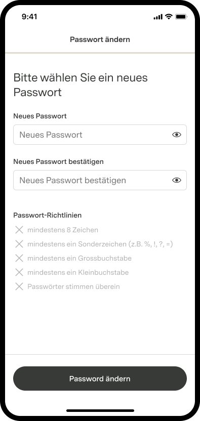 Ändern Sie Ihr Initialpasswort und bestätigen Sie mit «Passwort ändern».