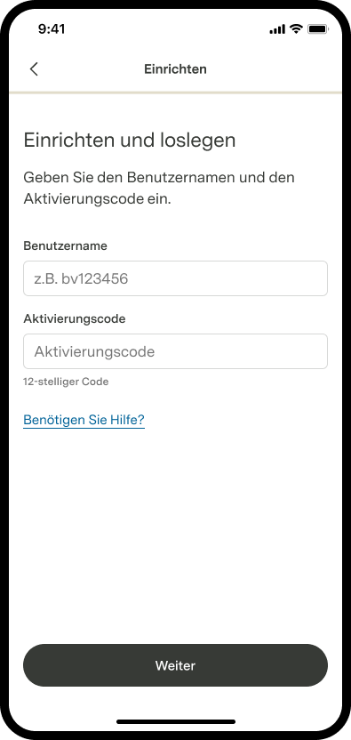 Sie haben die App nun aktiviert. In Zukunft können Sie sich jederzeit mit Ihrem Benutzernamen und persönlichen Passwort anmelden.