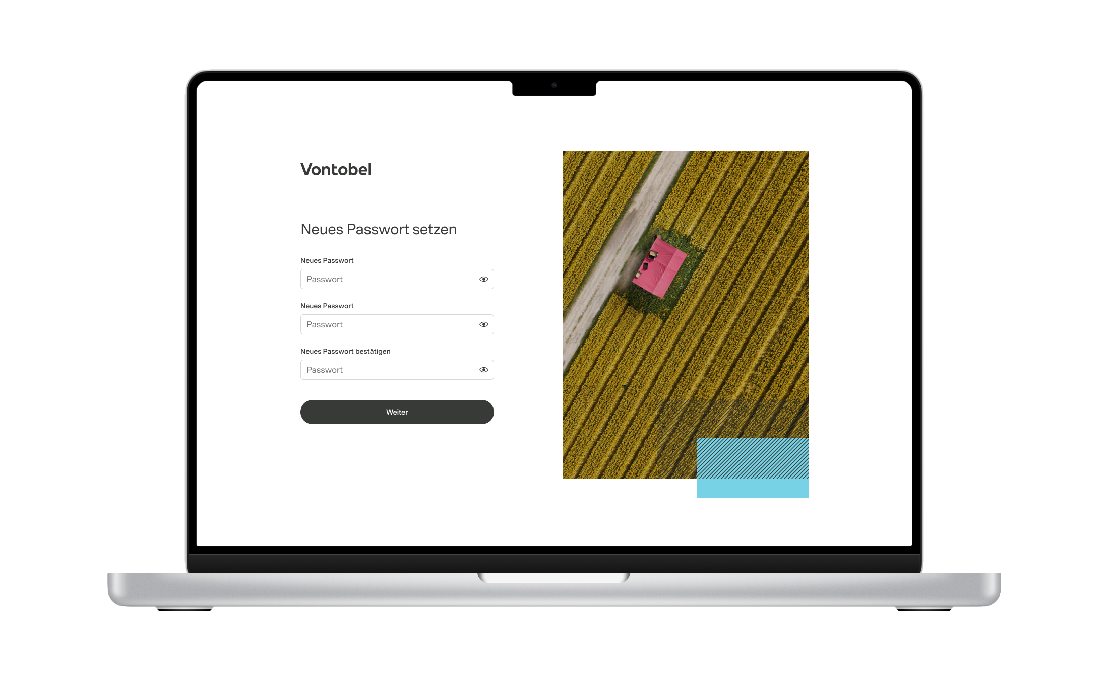 Ändern Sie Ihr Initialpasswort und bestätigen Sie mit «Weiter».